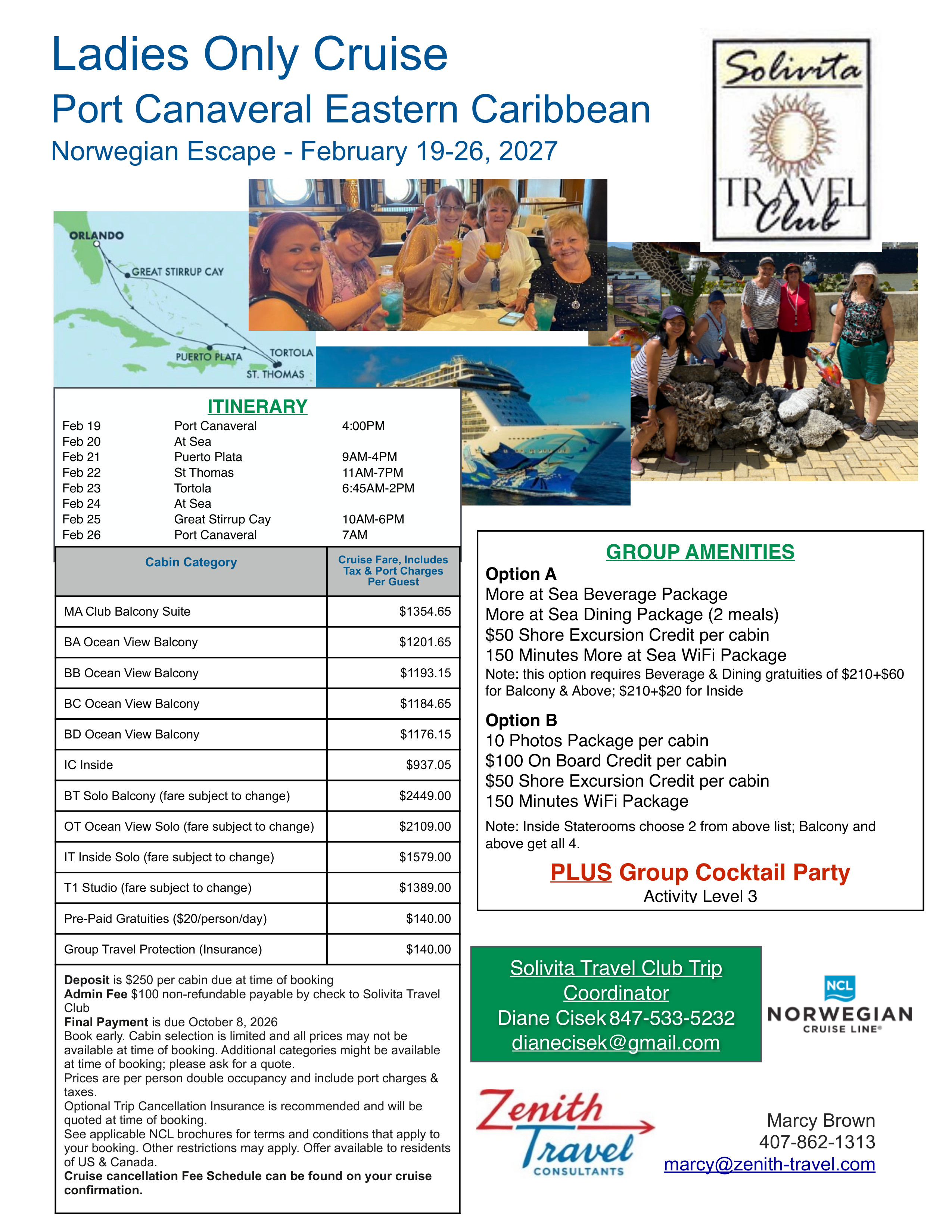 Ladies Only Cruise Port Canaveral Eastern Caribbean Norwegian Escape Trip Coordinator Diane Cisek