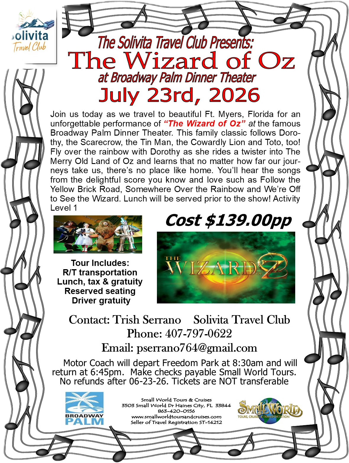 The Wizard of Oz at Broadway Palm Dinner Theater Trip Coordinator Trish Serrano